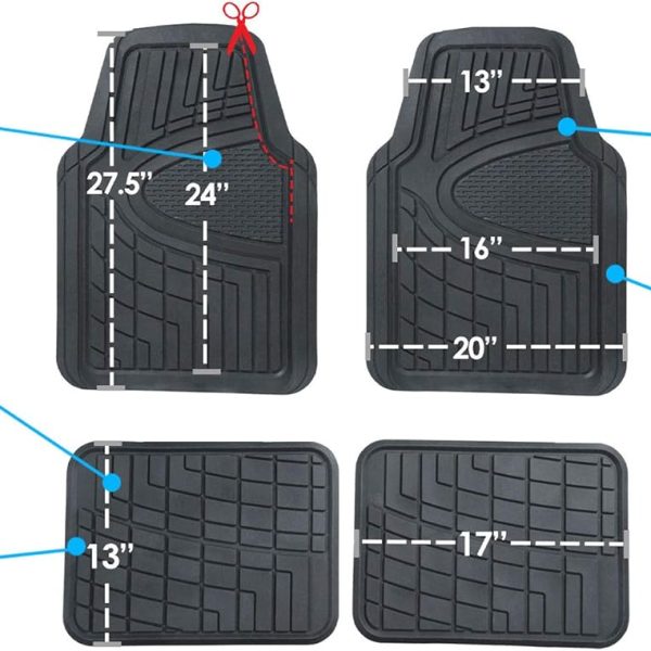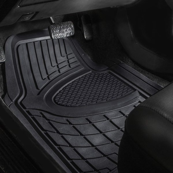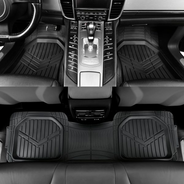 Automotive Floor Mats – Heavy-Duty Rubber, Universal Fit Full Set, , Trimmable For Most Cars, Sedan, SUV, Truck, Black