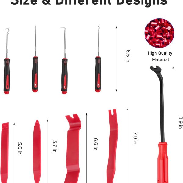 Auto Trim Removal Tool Set Pry Tool Kit, Door Panel Removal Tool, Fasteners Remover,Automotive Hook Set, Car Auto Oil Seal/O-Ring Seal Gasket Mini Precision Hooks – 9pcs Red