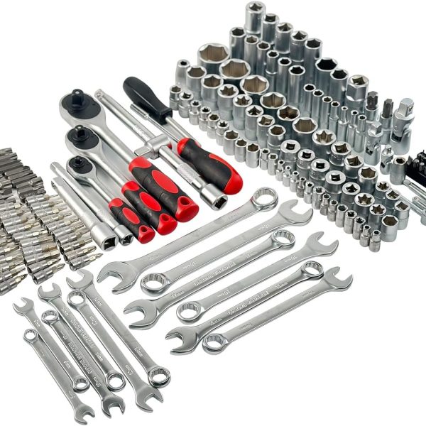 Professional 216pcs Socket Ratchet Wrench Set, 1/4 & 3/8 Inch Drive, Standard Full Mechanic Tool Set for Auto & Motorcycle Repair with Ratchet Handle, Extension Bar, Universal Joint & Reducer