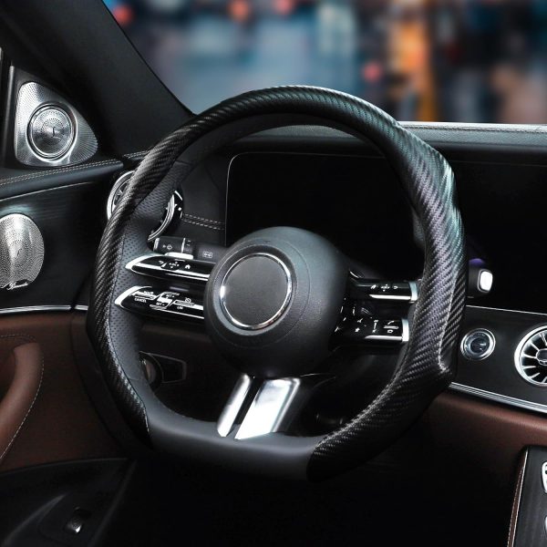 Car Steering Wheel Cover, Carbon Fiber Steering Wheel Protector 5D Sport Non-Slip, Comfortable & Breathable Car Interior Decoration, Universal Fit 14.5″-15″ Steering Wheel