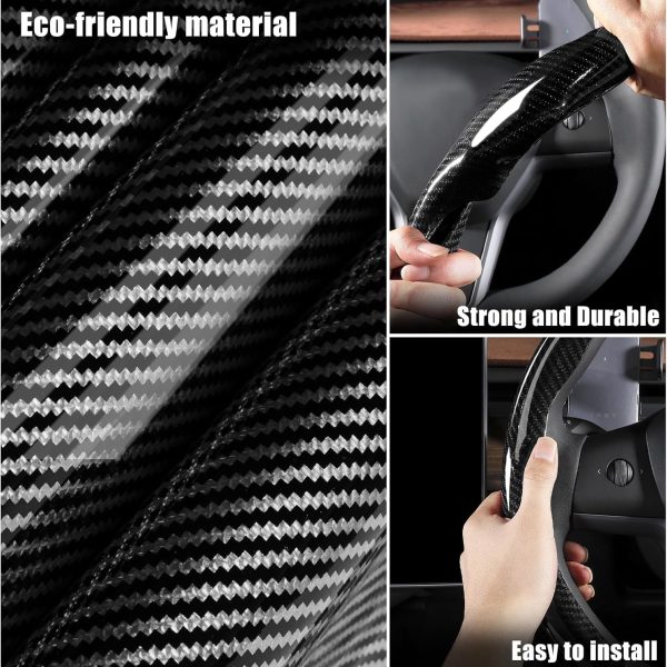Car Steering Wheel Cover Bright Carbon Fiber, Non-Slip Steering Wheel Wrap Universal 14.5-15 inch Steering Wheel Car Accessories Interior Protector, Black