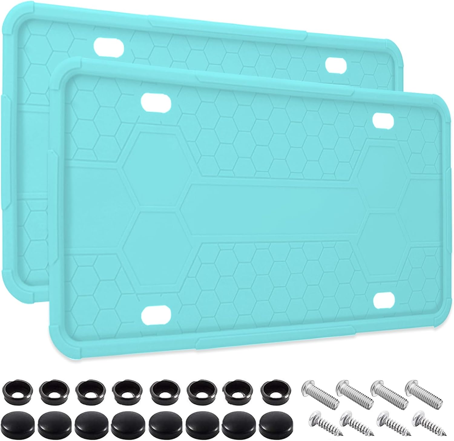 2 Pack Silicone License Plate Frames Black, Car Plate Frame Holder, Universal US Front & Rear Truck Frame Protector Mounting Kit Accessories, Rust Proof, Rattle Proof, Weather Proof