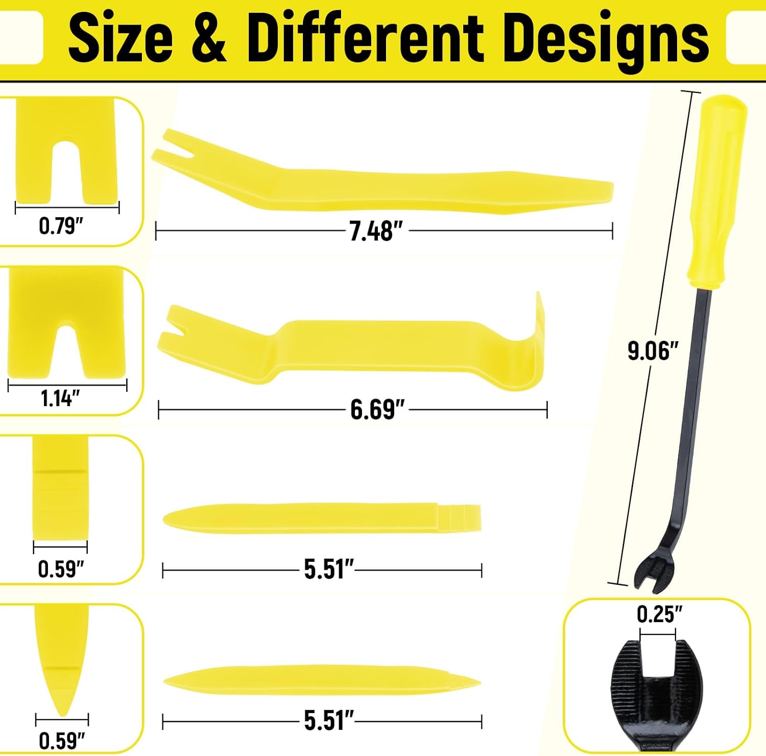 - Versatile: The plastic panel removal tools are designed in a variety of shapes and sizes, allowing easy access to a variety of hard-to-reach areas. The tools are bent at a moderate angle, not sharp, to avoid scratching the car paint and keep your car intact