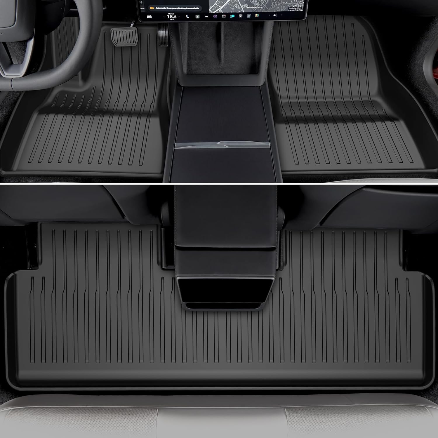 - All-Weather Protection: Made from high-quality TPE material with a non-slip design, these mats effectively trap water, snow, mud, and sand, keeping your Model 3’s floor clean and dry.
