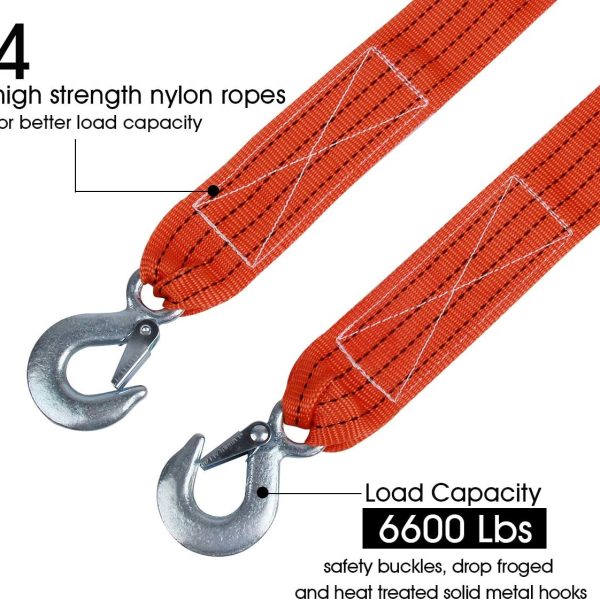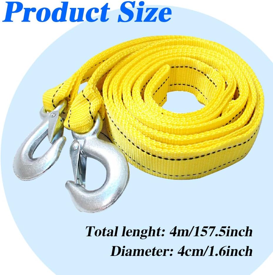- [Reliable design]: The body of the recovery strap heavy duty with hooks is specially woven to increase the rigidity of the traction belt and ensure that it will not break during use. The hook belt safety buckle, made of high wear-resistant steel material, will never be damaged or unhooked. The bright yellow color makes it easy to spot. It is the ideal choice for you to buy car tow straps.